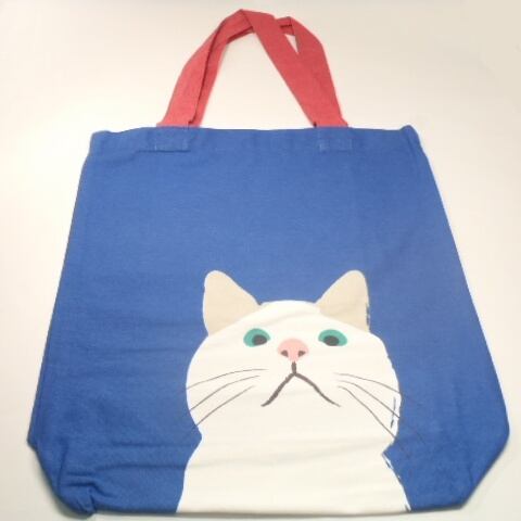こっちを見つめるかわいい白猫ターチャンのトートバッグ。
