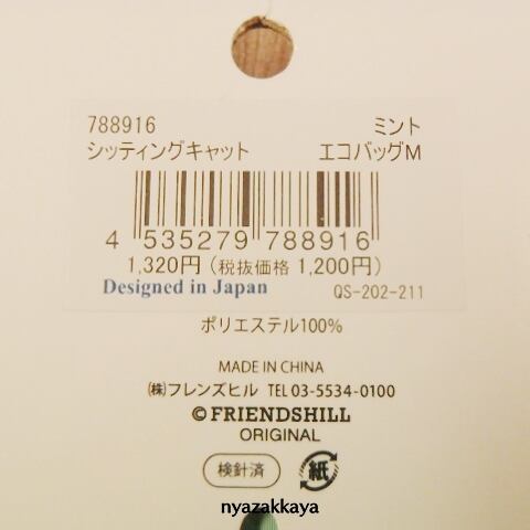 猫 エコバッグ M シッティングキャット QS-202-211