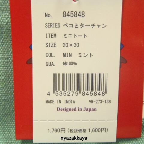 ターチャンとミルキーペコちゃんのかわいいミニトート。
