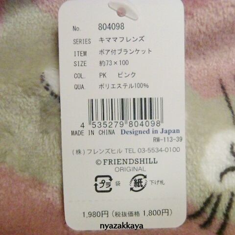 猫 ブランケット ターチャン ひざ掛け キママフレンズボア付ブランケット RW-113-39