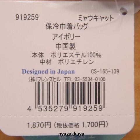 猫 保冷巾着バッグ ミャウキャット CS-165-139